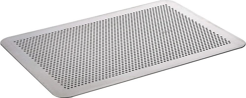Perforovaný plech na pečení ze silného hliníku. Plech je úplně plochý, nenajdete na něm žádné hrany ani okraje. Díky 3mm otvorům bude pečení zcela rovnoměrné.