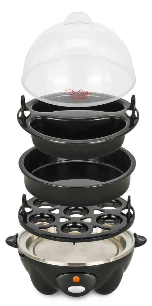 Vařič vajec 3v1 1) vejce naměkko, natvrdo nebo středně vařené (nahniličku) 2) volská oka 3) napařování zeleniny, příprava omelety, rýže, obilovin Plně automatický vařič vajec 3v1 uvaří až 7 vajec najednou na všechny možné způsoby. Stačí přidat vodu, zapnout a vařič vajec udělá vše za vás. Vařič vajec 3v1 - výhody: - snadné použití - přesný, automatický provoz - jednoduché čištění - bezpečný (díky...
