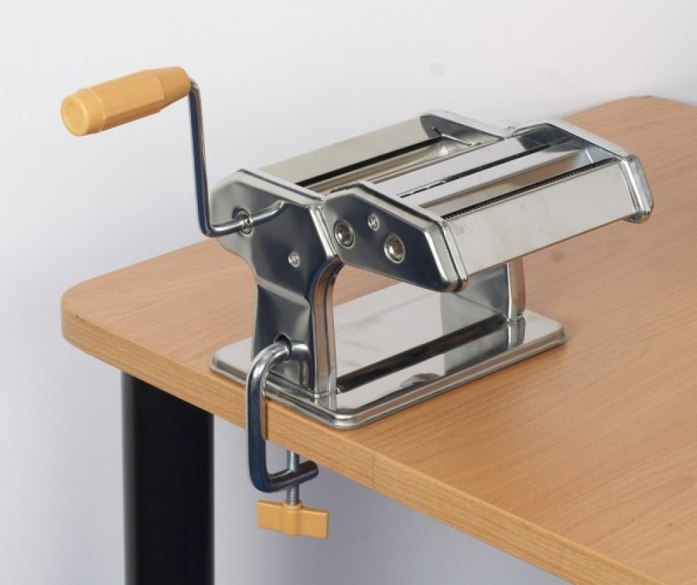 Strojek na nudle je skvělý pomocník pro všechny hospodyňky při přípravě domácích nudlí. Obsluha tohoto strojku je velice jednoduchá a rychlá. Velmi dobře se také udržuje. Strojek na nudle má nastavitelný ocelový váleček na rozválení těsta, odnímatelné držadlo s plastovou rukojetí a upevnění na stůl pomocí svěráku.