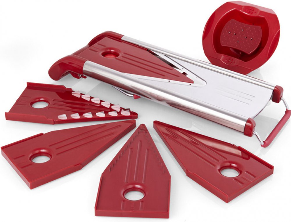 V-kráječ NEREZ Multifunkční struhadlo krájí syrovou zeleninu i ovoce, výborný pomocník při zdobení různými druhy zeleniny. V-kráječ NEREZ - možnosti krájení: krájení tenkých plátků krájení středních plátků krájení širokých plátků krájení malých proužků/hranolek krájení širokých proužků Součástí dodávky je: bezpečnostní držák (ochranný klobouček chrání po celou dobu Vaši ruku), vodící lišta, protiskluzové podložky, stojánek pro uschování nožů. V-kráječ NEREZ se velice snadno se čistí, stačí opláchnout pod tekoucí vodou. Na V-kráječ NEREZ poskytujeme záruku v délce 24 měsíců.