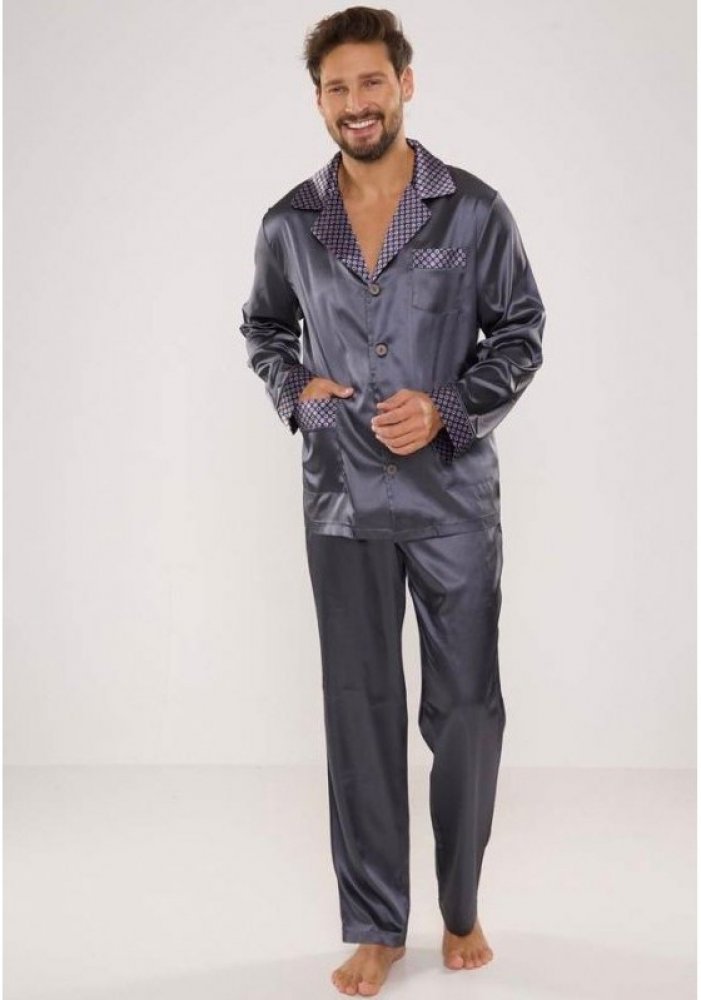 De Lafense Satyna pyžamo dlouhé propínací šedé