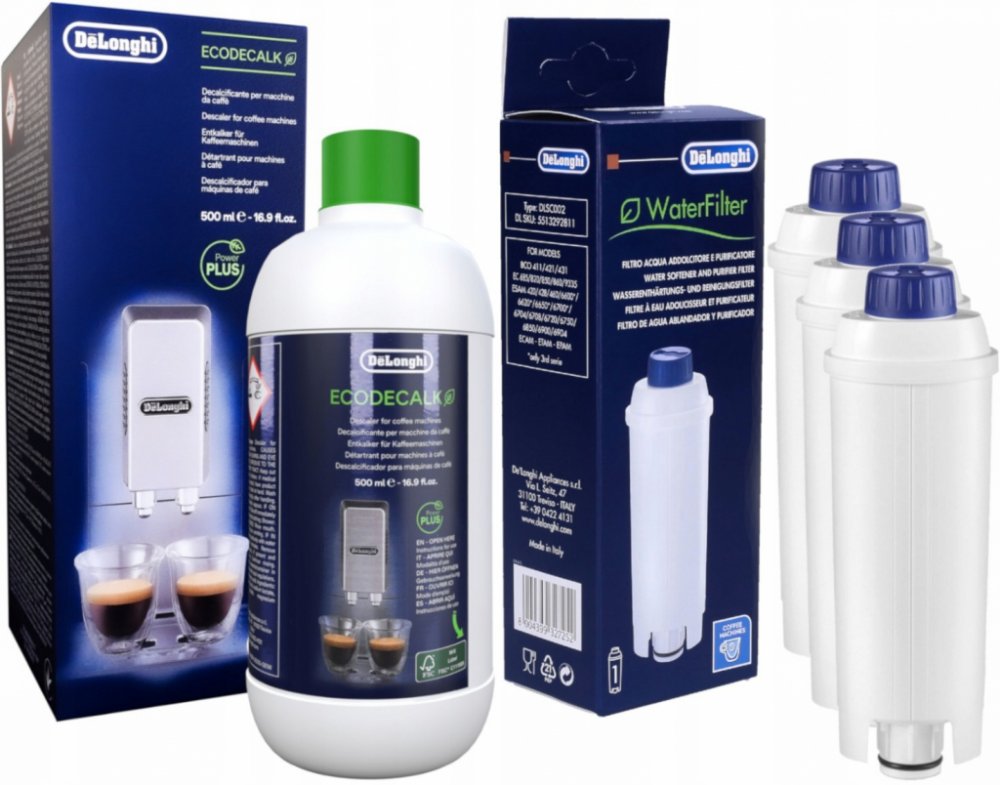 3x Filtr vody pro kávovar DeLonghi (DLS C002/3017) + Odvápňovač VYSOKÁ KVALITAIdeální sada pro péči o kávovar a dosažení nejlepší kvality kávy!Proč si vybrat náš set?