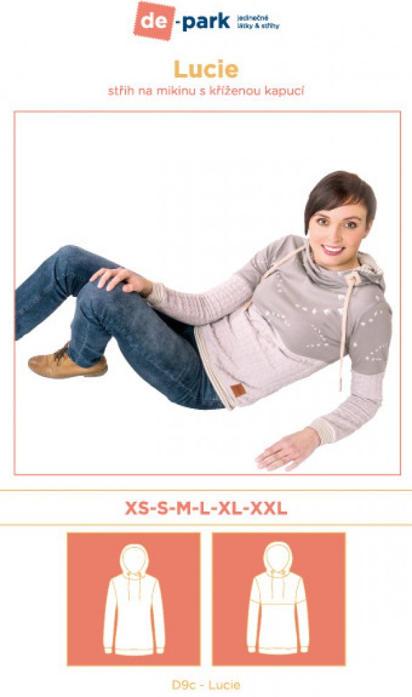 Zamilujte si střih na mikinu Lucie, která díky křížené kapuci zaujme na první pohled. Popusťte uzdu své fantazii, kombinujte různé barvy a vzory teplákovin a vytvořte jedinečný kousek, ve kterém budete nepřehlédnutelná.