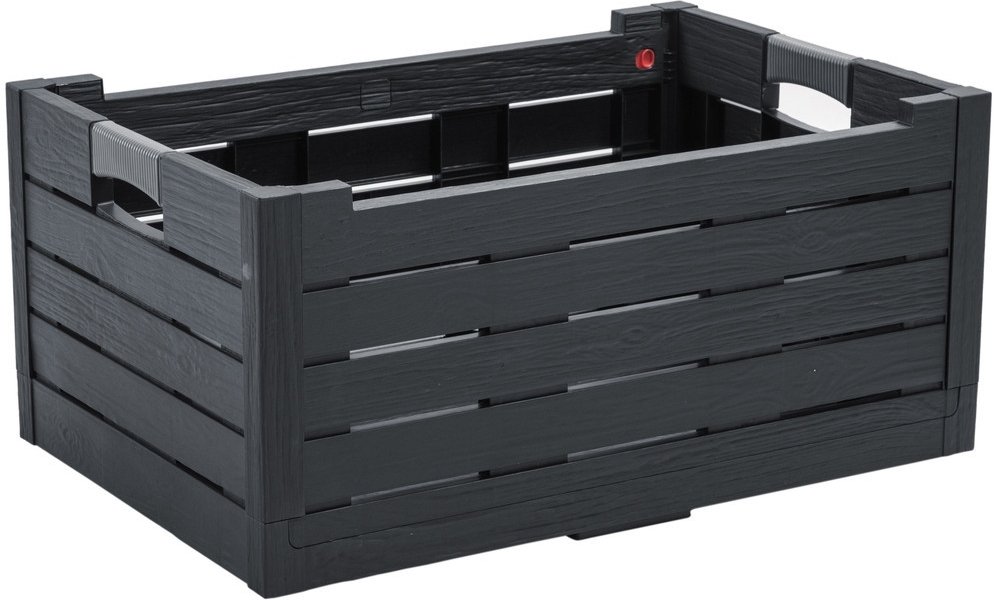 Elegantní grafitové provedení s imitací dřeva dodává přepravce moderní vzhled, který se hodí do každého prostředí. Pevná madla zajišťují pohodlné přenášení i plně naložené přepravky.