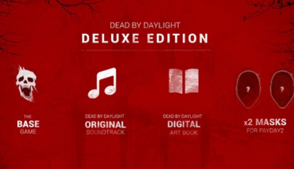 Dead by Daylight Deluxe Edition obsahuje: základní hru Dead by Daylight oficiální soundtrack digitální Art Book 2 masky pro PAYDAY 2