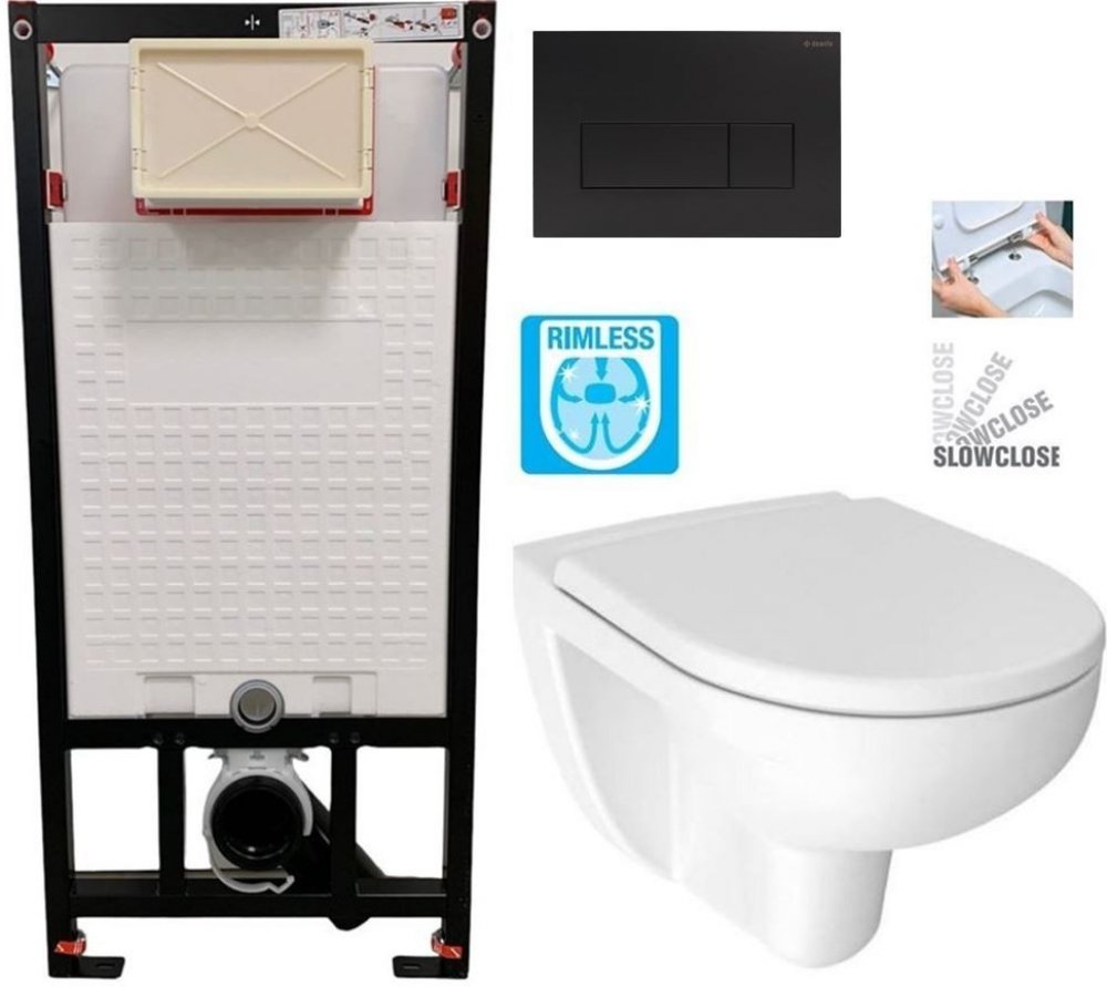 WC kombi RIMLESS /bez splachovacího kruhu/ = je moderní systém splachování, který se charakterizuje znamenitou funkčností a vysokou hygienou oproti běžným klozetům se splachovacím kruhem. U běžných klozetů může docházet k zachycování nečistot ve splachovacím kruhu pod okrajem mísy. Současný systém zajišťuje dokonalý rozvod vody a jednoduché čištění - veškerý prostor uvnitř mísy je smaltovaný a jednoduše čistitelný.