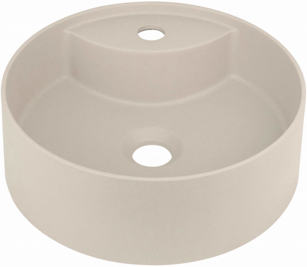 Kulaté granitové umyvadlo Silia má vestavěný ostrůvek pro montáž vodovodní baterie. Svým malým rozměrem se skvěle hodí i do menších koupelen. Umyvadlo nemá přepad, takže jeho povrch je dokonale hladký a snadno se udržuje v čistotě. Béžová povrchová úprava dodává interiéru teplo a jemný charakter. Kombinací s koupelnovou konzolí ze stejné kolekce máte hotové uspořádání koupelny.