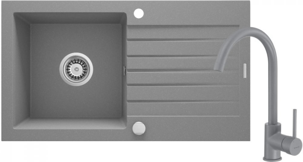 Granitový dřez spolu s baterií ve stejné barevném provedení tvoří dokonalý komplet.