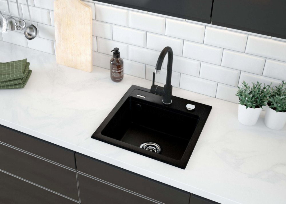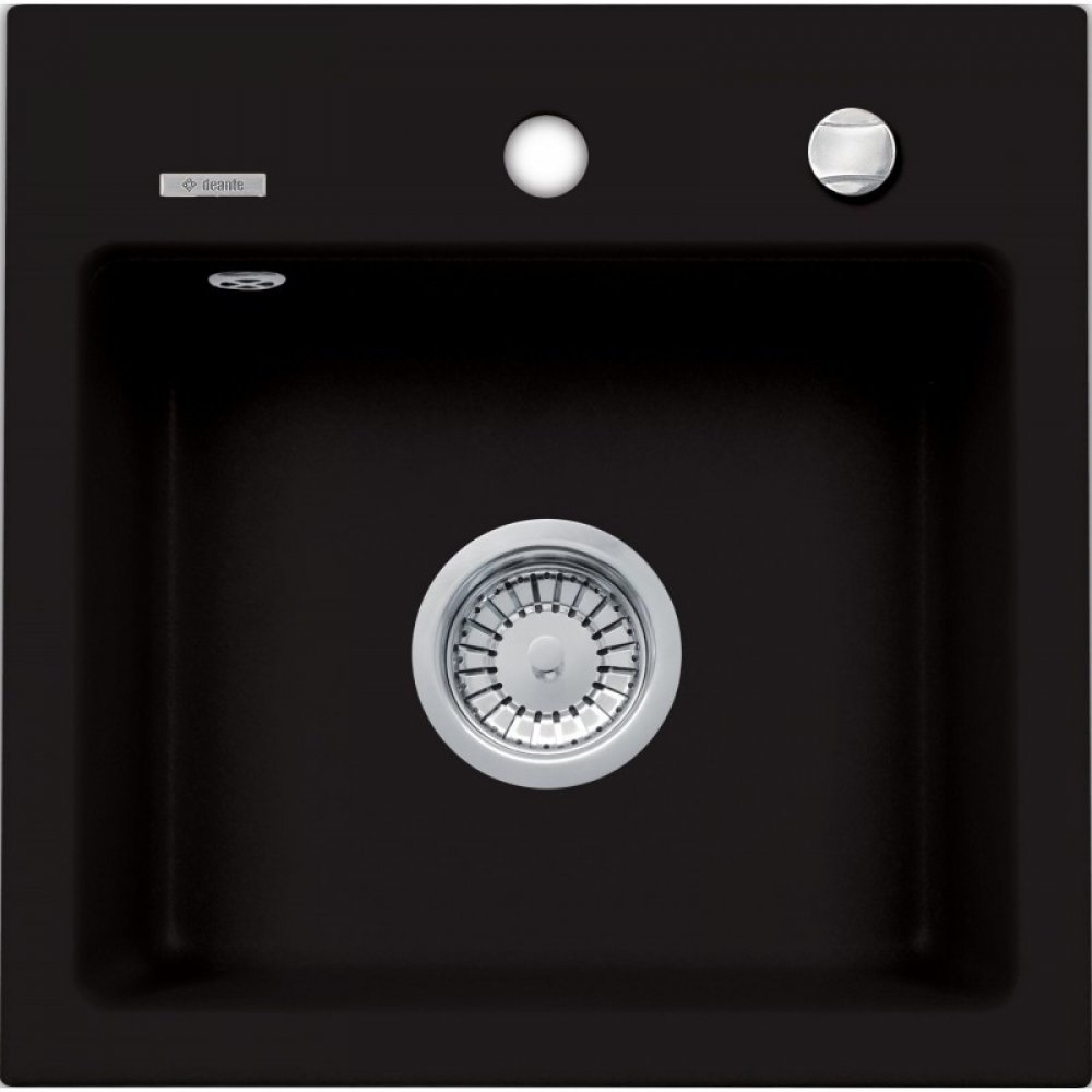 Deante Zorba, granitový dřez 440x440x184 mm B/O, 3,5" + prostorově úsporný sifon, 1-komorový, černá, ZQZ_N103