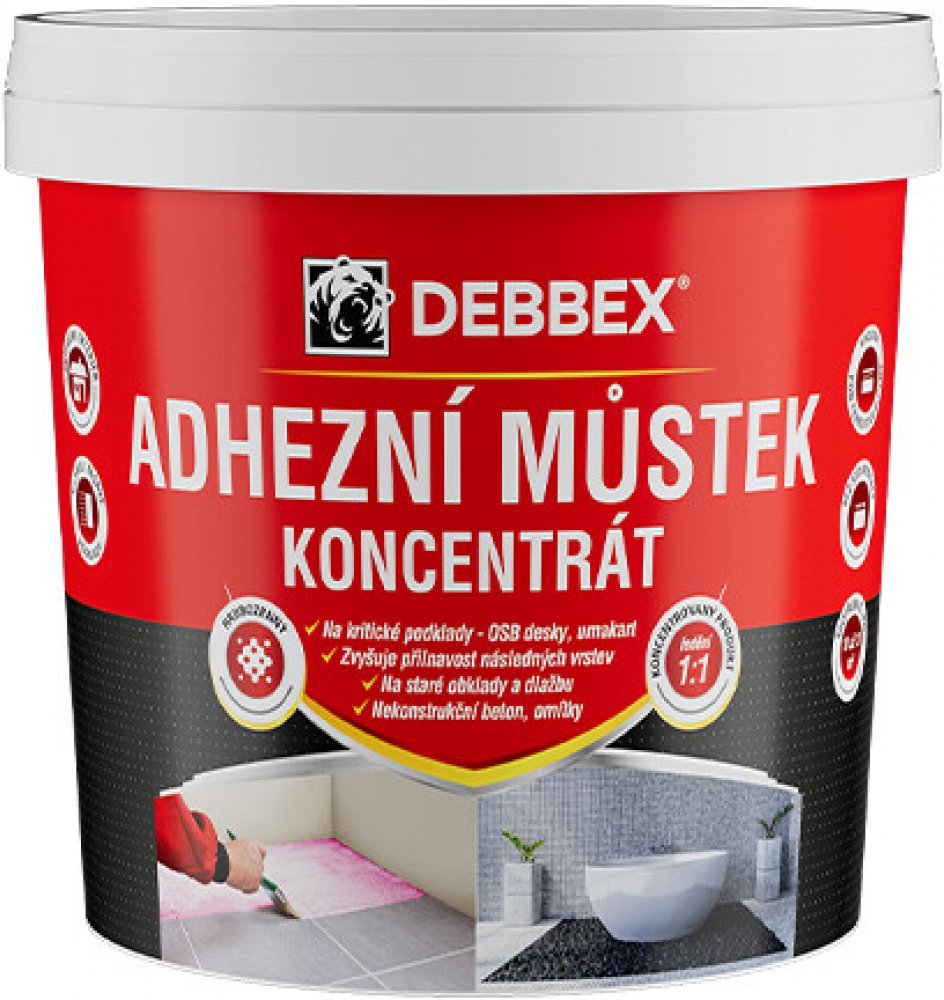 Adhezní můstek je jednosložkový bezrozpouštědlový nátěr, který je možno použít v interiérech i exteriérech na vyzrálé omítky, nekonstrukční a pohledový beton, skleněné tapety, dřevěné, papírové, sádrokartonové povrchy na dřevotřísku, na OSB desky, umakart, obklady a dlažby apod.
