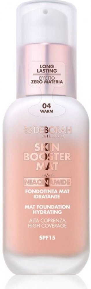 Objev nový Skin Booster matující make-up – revoluční spojení make-upu a péče o pleť. Díky svému zmatňujícímu efektu je vhodný především pro smíšenou a mastnou pleť. Tento unikátní make-up nabízí sametově matný finiš, který zůstává lehký a přirozený na pleti po celý den. Díky jeho inovativnímu složení získáš nejen dlouhotrvající perfektní krytí, ale i hydrataci a péči, kterou tvá pleť potřebuje. Proč si ho zamiluješ? Matný efekt a hydratace: Perfektně sjednotí tón pleti, minimalizuje nedokonalosti i lesk a zároveň se postará o důkladnou hydrataci. Přirozený vzhled: Lehká textura se snadno vstřebává a na pleti vypadá jako tvá druhá kůže – žádný "maskový" efekt! Vysoká odolnost: Zajistí dlouhotrvající vzhled bez nutnosti častých úprav. Aktivní složky: Niacinamid: Zklidňuje pleť a zlepšuje její texturu. Vitamin C: Rozjasňuje a podporuje přirozený jas pokožky. Hydratační složky: Zanechávají pleť svěží a vláčnou. Obsahuje také SPF15, které chrání pleť před nepříznivými vlivy městského prostředí. Elegantní balení a snadná aplikace. Make-up je balený v luxusní 30ml matné skleněné lahvičce s detaily v růžovozlatém odstínu. Díky praktické pumpičce si snadno dávkuješ přesně tolik, kolik potřebuješ. Vyber si z šesti odstínů navržených tak, aby seděly různým tónům pleti. Dopřej své pleti dokonalý look každý den!Odstíny a podtóny:00 Fair - neutrální0 Light Warm - neutralní až teplý01 Light Rose - studený 02 Nude - neutrální až teplý03 Medium - teplý04 Warm - teplý05 Tan - teplý06 Porcelain - neutrální07 Almond - neutrální08 Mocha - teplýTipy od Luca Mannucciho - make-up artisty Deborah Milano Použij techniku vtlačování: Pro nejlepší výsledek nanášej Skin Booster Matte Foundation pomocí houbičky a lehce vtlačuj do pleti. Získáš tak dokonalé krytí. Alternativa: Preferuješ štětce? Zvol plochý štětec, který zajistí rovnoměrnou aplikaci. Fixace: Nakonec make-up můžeš ještě zafixovat lehkým sypkým pudrem. Měj na paměti, že méně je více – vyhni se nadměrnému množství, aby výsledný look působil přirozeně. Tip na závěr: Pro fixaci make-upu, zvláště v jemných oblastech jako okolí očí, použij velký, měkký štětec. Díky těmto tipům dosáhneš dlouhotrvajícího a přirozeného výsledku!