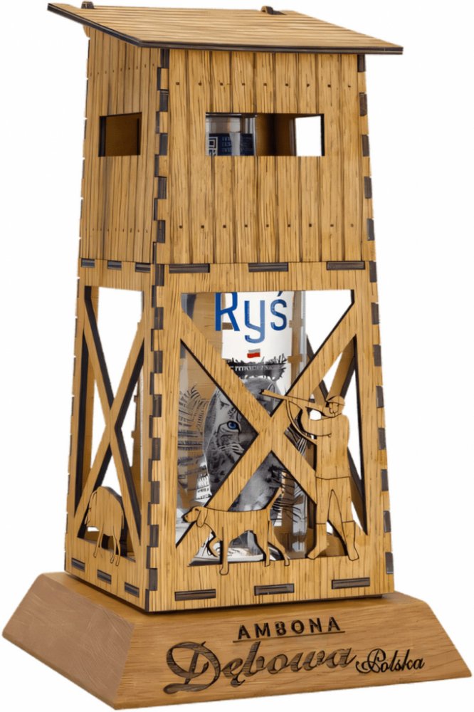 Dębowa Polska Vodka v dřevěném obalu ve tvaru loveckého posedu pro všechny, kteří mají přírodu v srdci.