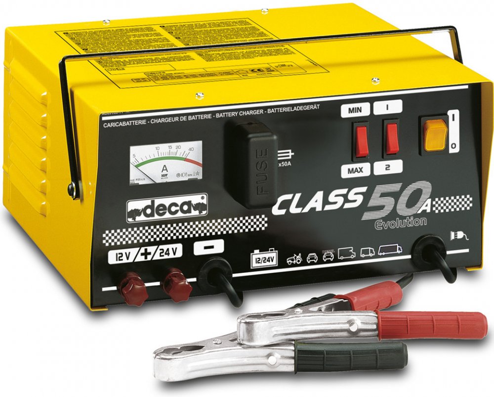CLASS 50A (12/24V - 35A) - Přenosná nabíječka olověných kyselinových akumulátorů 12/24V. CLASS 50A je vhodná pro nabíjení autobaterií o kapacitě 15 - 500 Ah.