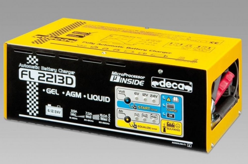 Deca FL 1113D automatická nabíječka 6V/12V/24V-15AAutomatická mikroprocesorem řízená nabíječka 6V/12V/24V-15A. Výrobce firma DECA. Nabíječka je vhodná pro nabíjení olověných, bezúdržbových (MF), AGM a gélových akumulátorů o kapacite 15Ah - 260AhLED indikace nabíjeníAutomatické nabíjeníMožnost trvalého připojení k akumulátoru - udržovací režimOchrana proti zkratu i přepólováníVolba nabíjecího napětí 6V/12V/24VJednoduché ovládaníPaměť na nabíjecí parametry