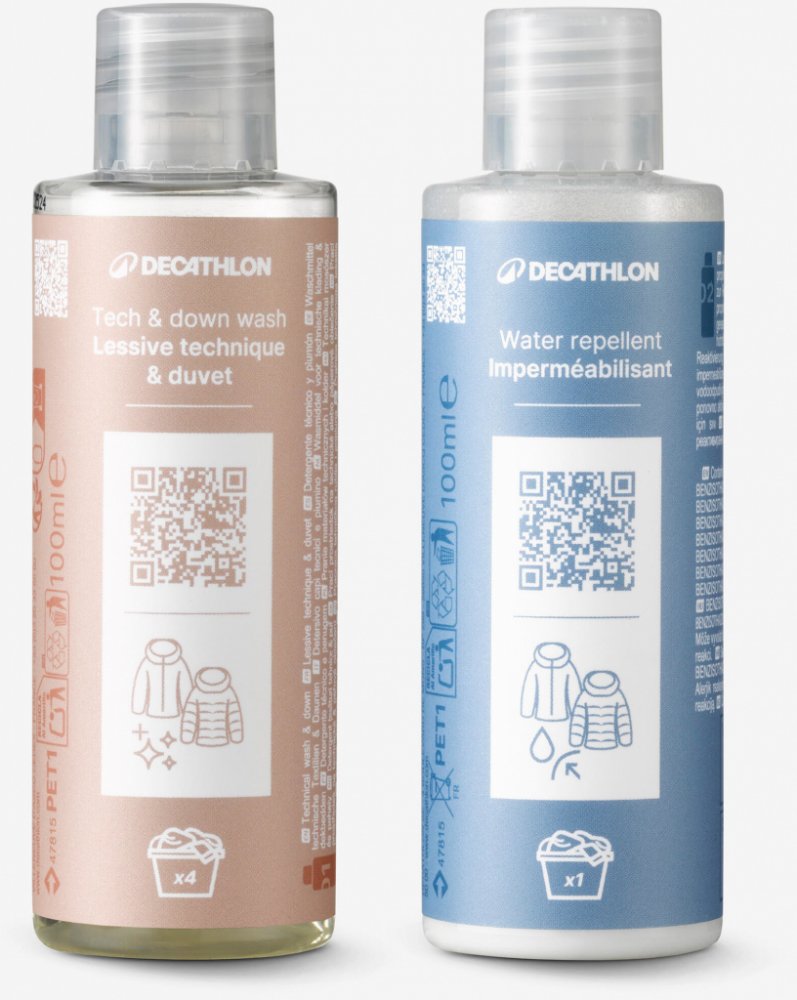 Sada 2 v 1 na až 4 praní a jedno impregnování. Vraťte svému sportovnímu oblečení původní funkčnost. Se dvěma lahvičkami o objemu 100 ml můžete prát a chránit se před deštěm jednoduše tak, že své oblečení naimpregnujete. Lahvičky se stupnicí usnadňují dávkování. Tato sada obsahuje naše dva hlavní produkty ve 100 ml verzi: