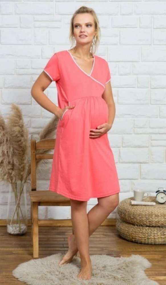 Těhotenská noční košile, výstřihem přizpůsobena na pohodlné kojení.
