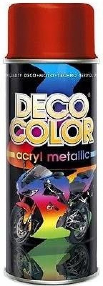 Barva ve spreji, metalíza ACRYL METALLIC, 400 mlDeco color Barva ve spreji metallic je akrylátový lak s jedinečným měnícím se efektem, získaným díky nové receptuře pryskyřic a pigmentů. Je vhodná nejen na dekoraci ale i při tuningu automobilů a motocyklů. Lze nanášet na podklady ze dřeva, kovu, hliníku, skla, kamene, keramiky, betonu a některých tvrdých plastů.Doporučujeme použít vrchní extra t...