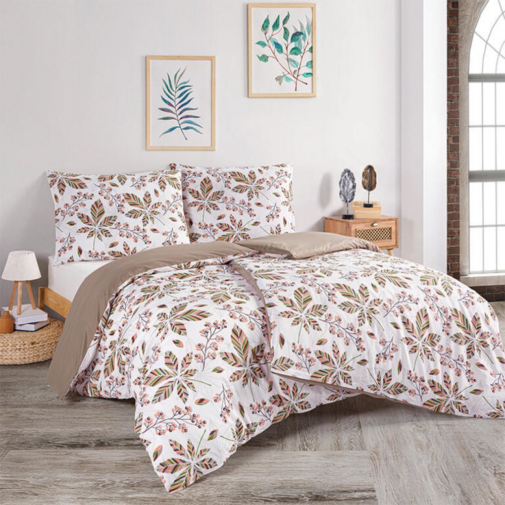 Oživte svou ložnici elegantním a stylovým vzhledem s bavlněným povlečením Konker, které bude ozdobou vaší ložnice a skvělým průvodcem do světa spokojeného a posilujícího spánku. Oboustranné provedení kombinuje jednobarevnou stranu v barvě capuccina a potištěnou stranu s příjemnými rostlinnými motivy. Povlečení je ušito ze 100% česané bavlny v provedení renforcé, která se vyznačuje jemností a lehko...