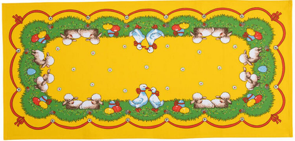 Stolní běhoun s tradičními velikonočními motivy v jasných barvách stylově ozdobí váš jídelní stůl a navodí pozitivní atmosféru. Velikonoční dezény, které jsou každoročně malovány ve firemním ateliéru tradiční české firmy Frolen, pomohou dokreslit kouzlo jarních svátků. Velikonoční zboží zde tkají podle letitých zkušeností z přírodních materiálů a zdobí kvalitním tiskem pro optimální dlouhotrvajíc...