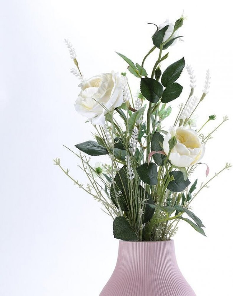 Krásná celoroční jemná kytice umělých květin je na první pohled téměř k nerozeznání od těch živých. Kytici vévodí bílá růže, celek dotváří krásenka společně s lučním kvítím také v bílé barvě. Nepřehlédnutelná, avšak jemná dekorace rozzáří jídelní stůl, konferenční stolek či komodu. Má kvalitně zpracované detaily a vynikne v každém prostoru. Materiál: textilie, plast, kov Výška: max. 68 cm