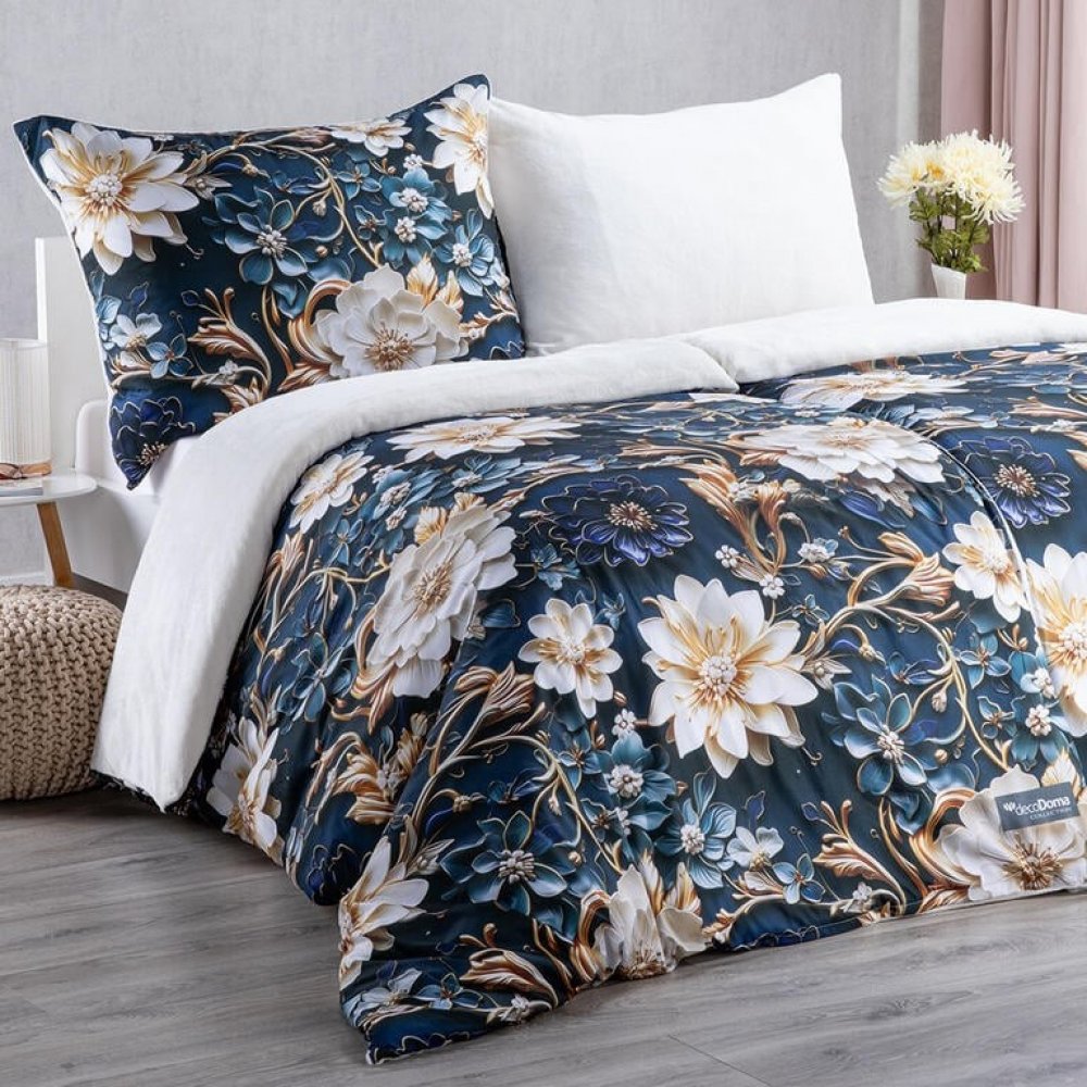 Úchvatný 3D potisk bílozlatých a modrých květů, které jako by pluly po temně modré hladině, vás přímo vtáhne do čarokrásného světa pohádkových snů. Sametově hebký mikroplyš pak rozmazlí vaši pokožku a příjemně zahřeje unavené tělo. Oboustranná ložní souprava z naší privátní kolekce Dual feel® navíc kombinuje dvě zdánlivě neslučitelné funkce – zároveň hřeje i chladí. Zimní strana s hebkým mikroplyšem je určená pro ty, co potřebují pořádně zahřát, letní strana z chladivého mikrovlákna je ideální pro horkokrevné spáče a pro letní odpočinek. Ložní povlečení Claudia vytvořili naši designéři v rámci jedinečné kolekce našich originálních produktů decoDoma ORIGINAL COLLECTION.