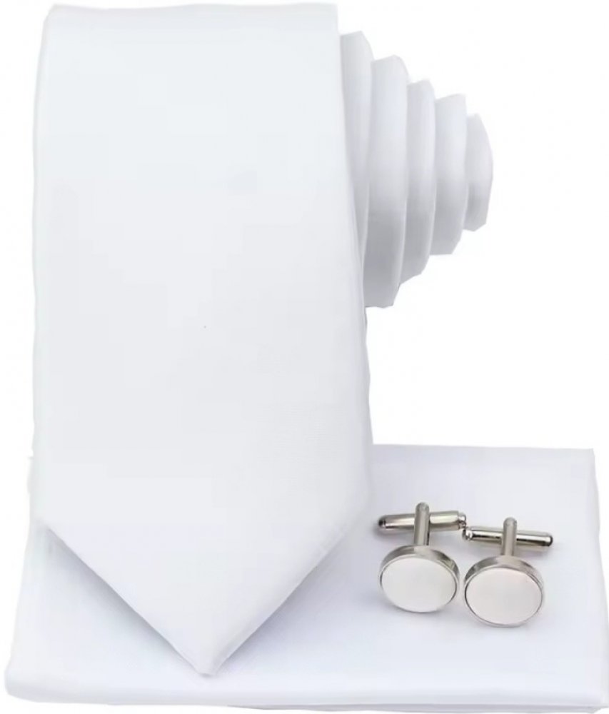 Decofashion sada kravata kapesníček a manžetové knoflíčky bílá