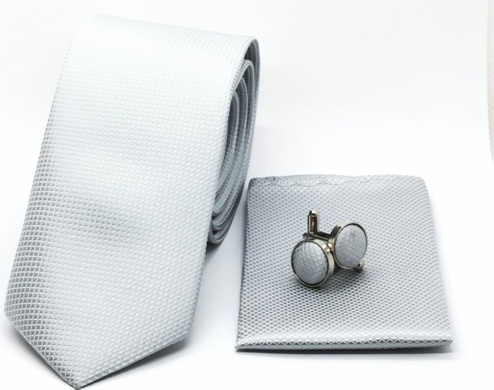 Decofashion sada s jemnou aplikací- kravata kapesníček a manžetové knoflíčky šedá