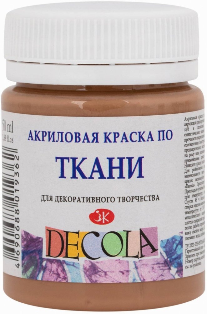 Barva na textil Decola 50 ml. Barva je krycí a hustá, vhodná pro razítkování, šablony i malbu. Barvy jsou vzájemně mísitelné. Jsou na vodní bázi. Děti do tří let pouze pod dohledem dospělých osob.