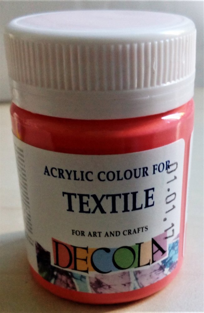 Barva na textil Decola 50 ml. Barva je krycí a hustá, vhodná pro razítkování, šablony i malbu. Barvy jsou vzájemně mísitelné. Jsou na vodní bázi. Děti do tří let pouze pod dohledem dospělých osob.