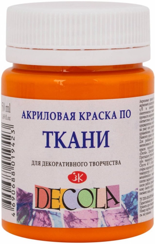 Barva na textil Decola 50 ml v barvě mandarinka. Barva je krycí a hustá, vhodná pro razítkování, šablony i malbu. Barvy jsou vzájemně mísitelné. Jsou na vodní bázi. Děti do tří let pouze pod dohledem dospělých osob.