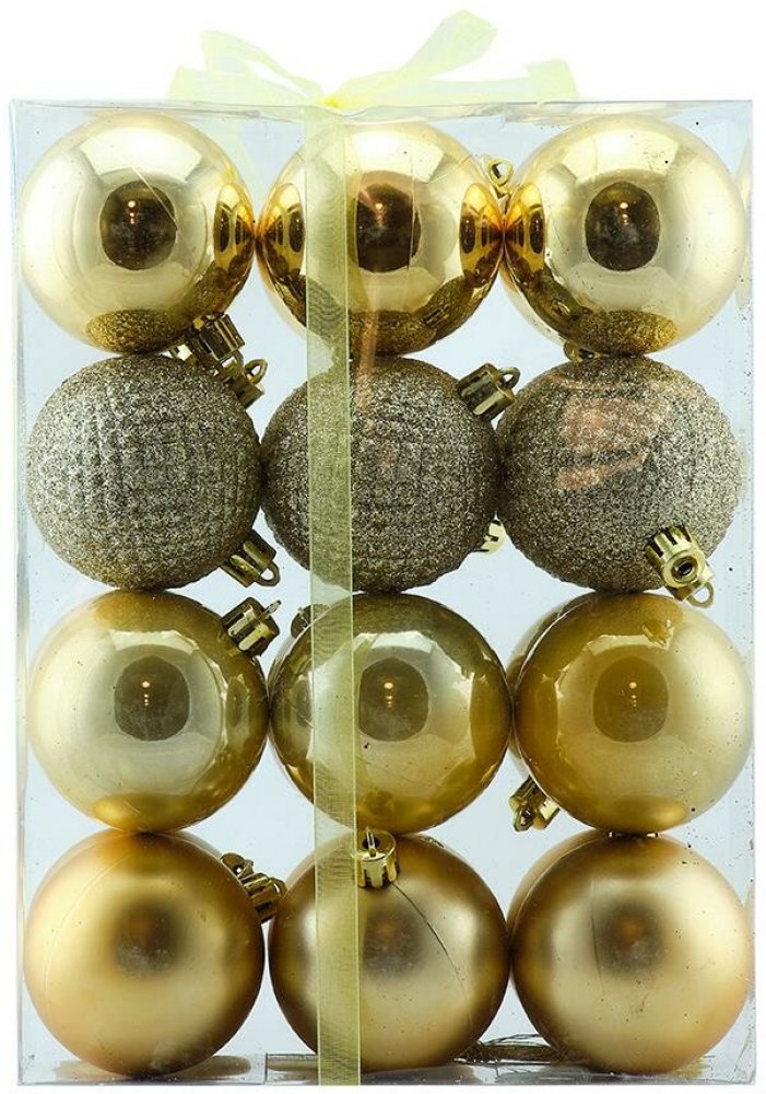 Klíčové vlastnosti produktu DECOLED Vánoční ozdoby - koule plastové,, zlaté, průměr 6 cm, 24 ks Vánoční ozdoby DECOLED jsou vyrobeny z pevného plastu Mají matný i lesklý povrch v zlaté barvě Celkové rozměry jsou 6 × 6 cm (vך) V balení se nachází 24 kusů ozdob stejného druhu