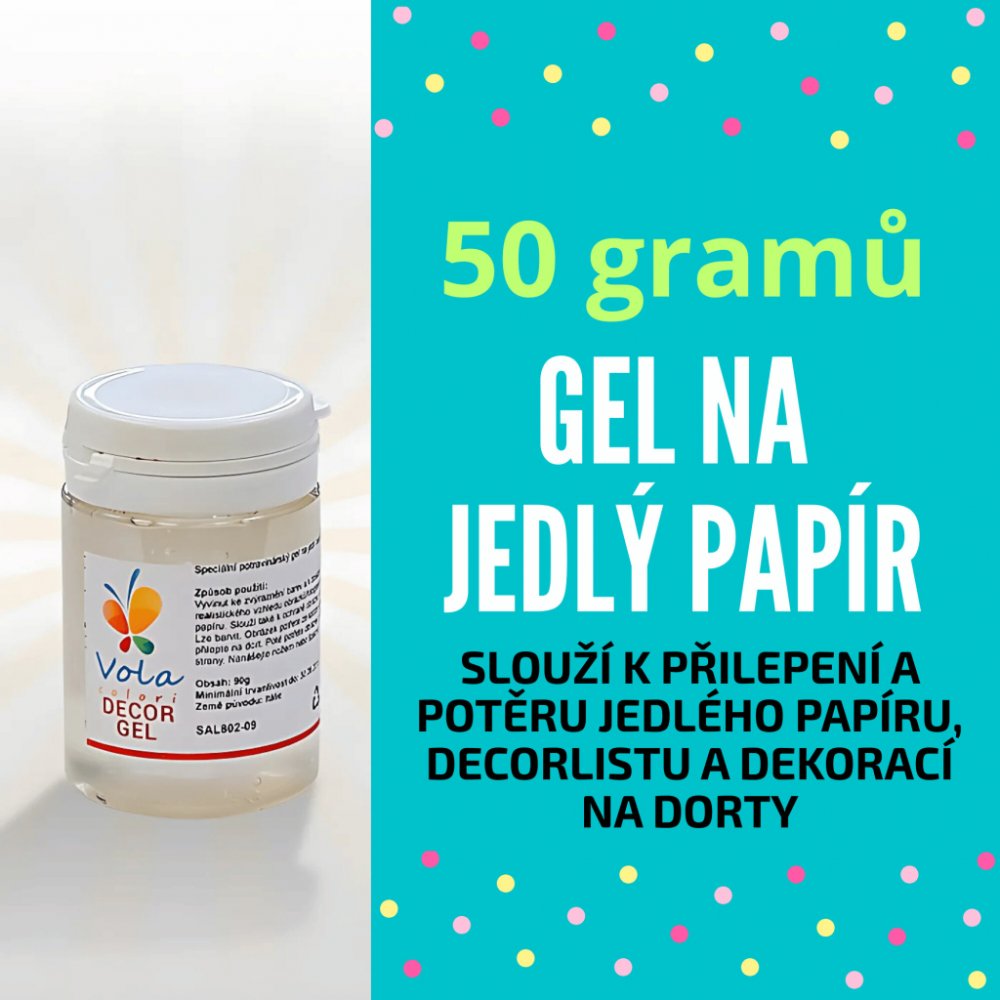 pod![CDATA[Speciální potravinářský gel na jedlý papír. Vyvinut ke zvýraznění barev a k dosažení realistického vzhledu obrázků/fotografií z jedlého papíru. Slouží také k ochraně obrázku před rozmočením a k přichycení obrázku na dort. Lze barvit.