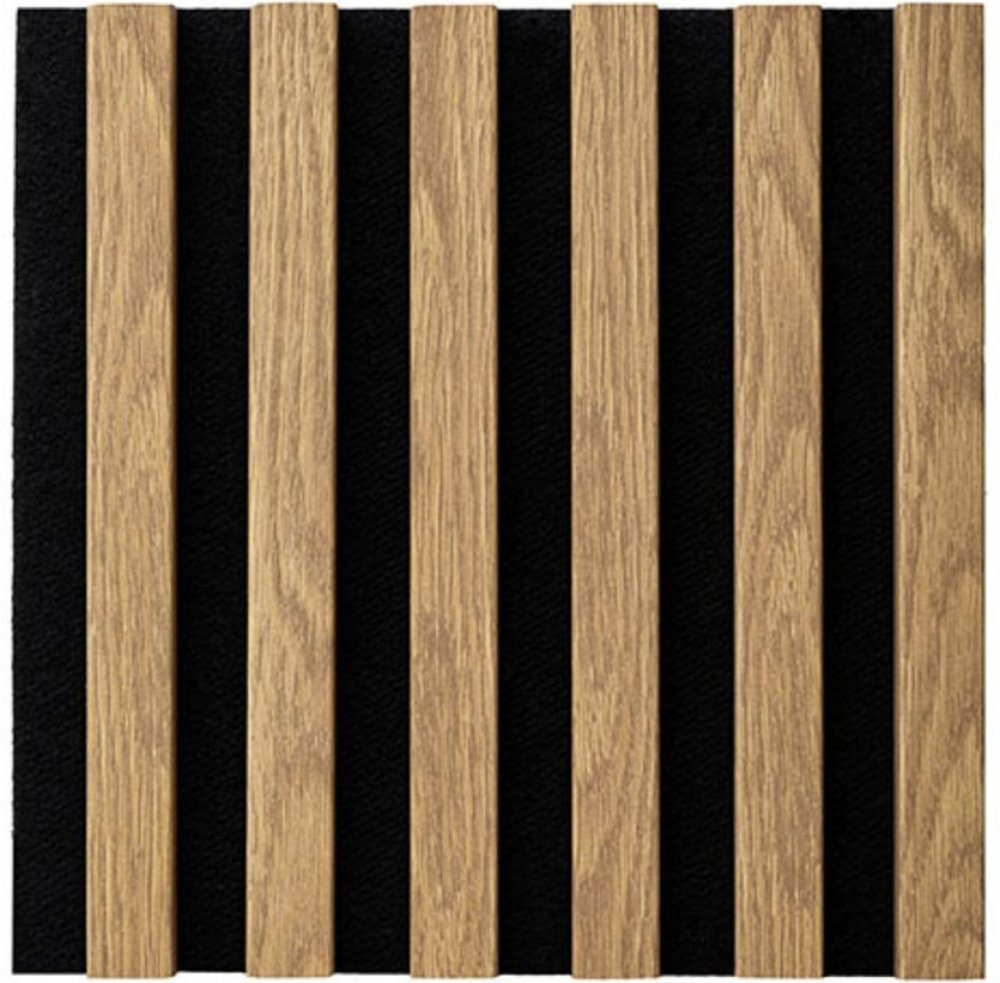 Akustické panely se využívají hlavně pro vylepšení akustiky místnosti, snížení ozvěny, ale také jako dekorativní prvek vhodný pro oživení či inovaci prostoru. Podklad panelu je z černého filcu, který tvoří funkci útlumu a jako vizuální prvek jsou na plsti MDF hranolky v dekoru dřeva. Akustické panely efektivně pohlcují střední a vysoké frekvence, což zlepšuje akustický komfort místnosti. Snižují t...