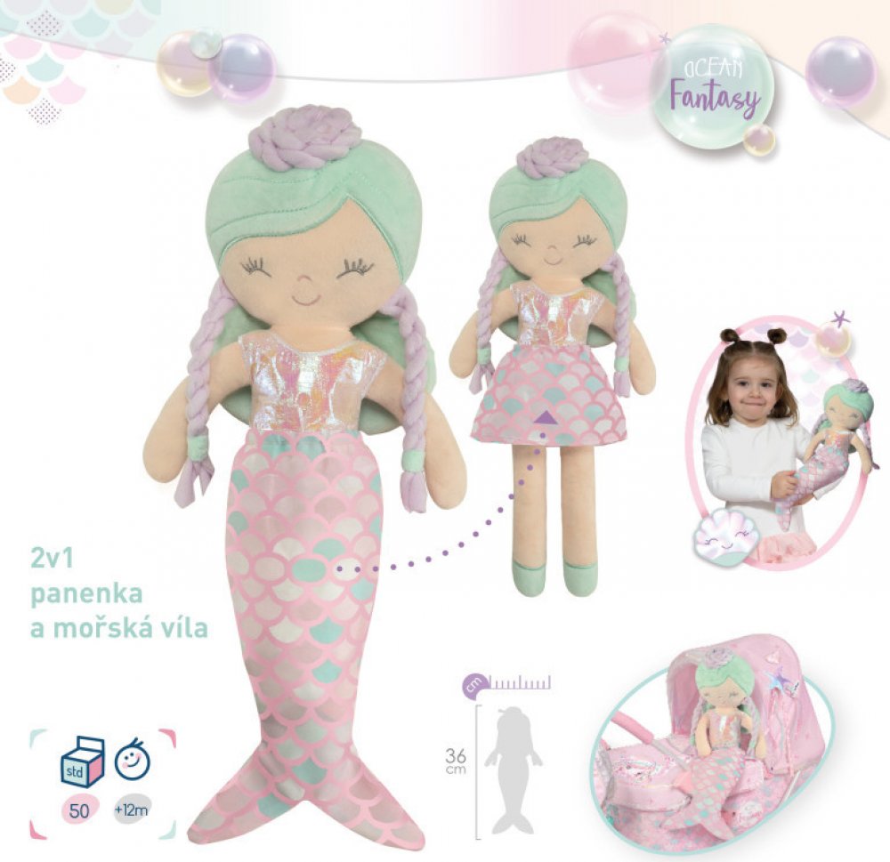 DeCuevas 20141 Plyšová panenka 2v1 OCEAN FANTASY - 36 cm