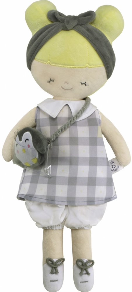 Plyšová panenka PIPO je malá slečna s plyšovým tučňáčkem, patřící do stejnojmenné kolekce, která je novinkou roku 2022 a nabízí kromě různých druhů kočárků a nábytku pro panenky i další doplňky pro budoucí hospodyňky. Charakteristická je pro ni šedobílá kostka v kombinaci s jednobarevnými šedivými a bílými drobně vzorovanými částmi a doplňky v jemně žlut...