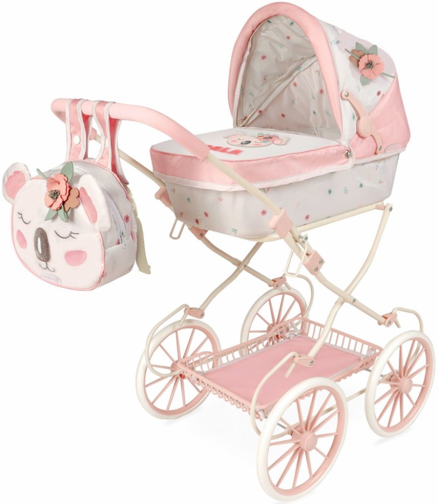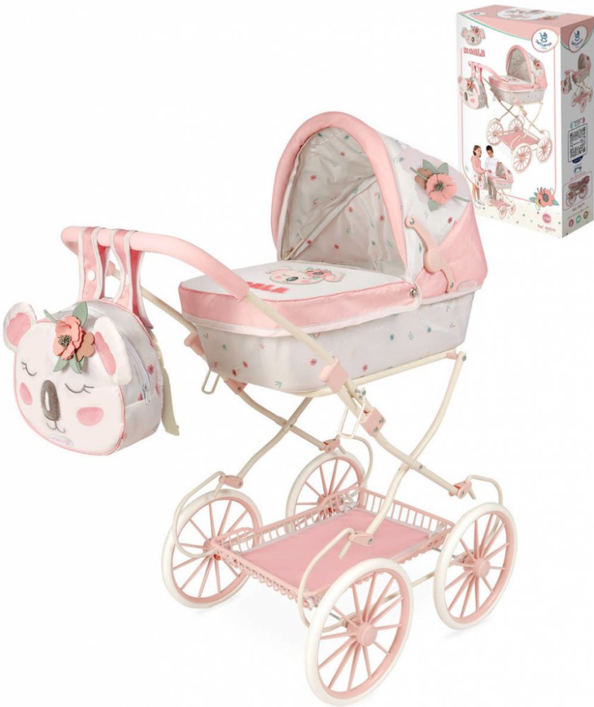 DeCuevas 80079A Skládací kočárek pro panenky s batůžkem KOALA 2025 - 81 cm patří do stejnojmenné, úspěšné kolekce z roku 2024, která nabízí nejen zmíněné kočárky, ale i jiné doplňky pro malé slečny a jejich panenky. Tato dívčí kolekce KOALA je doslova něžnost sama. Spící medvídek s květinou za ouškem je velmi roztomilý. Tento motiv doprovází každý výrobek z kolekce. V provedení se střídá bílá s dr...