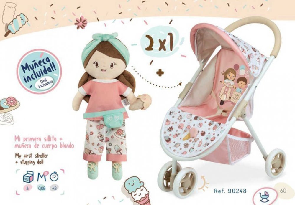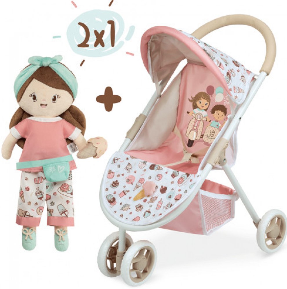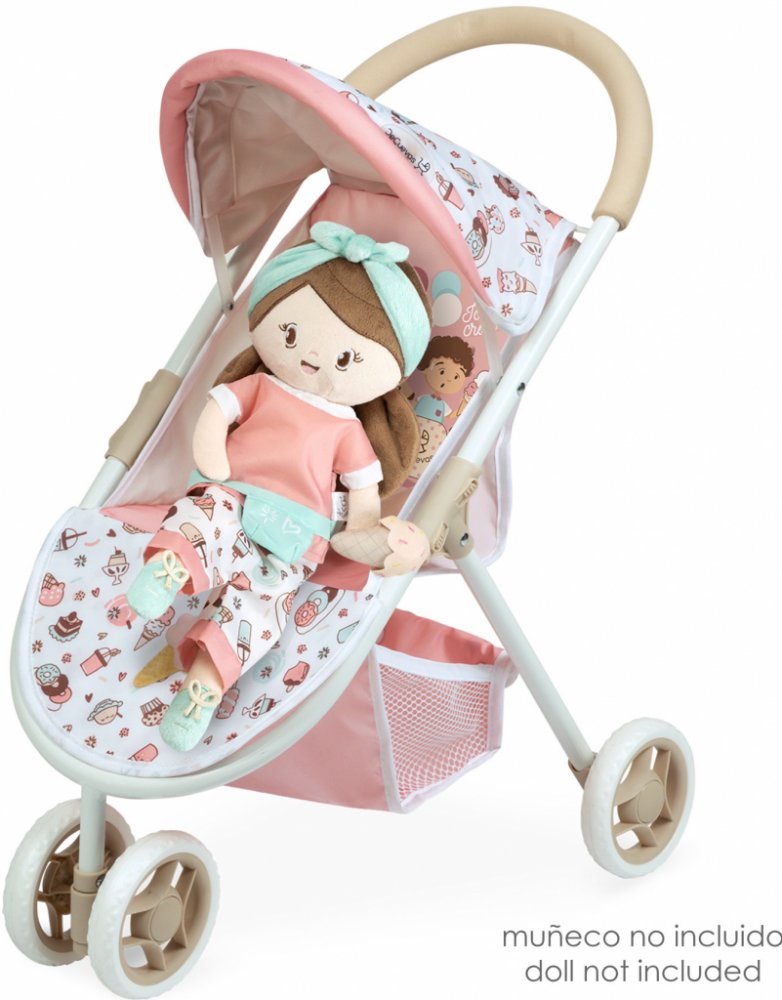 DeCuevas Sportovní kočárek pro panenky tříkolový DIDI - 55 cm je z doslova okouzlující, něžné, růžovo bílo hnědé kolekce s malým roztomilým štěňátkem DIDI, je díky nízké rukojeti a váze spíš vhodný pro malé a menší slečny.