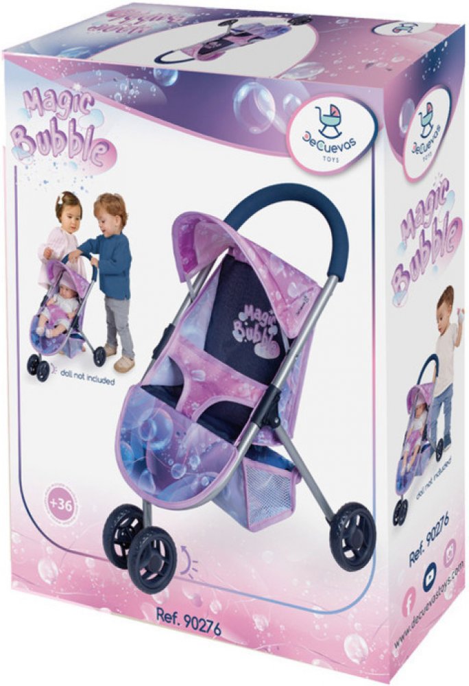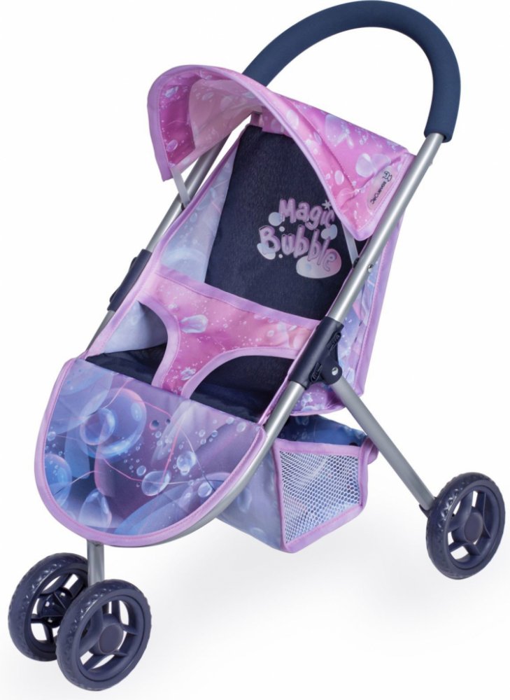 DeCuevas 90276 Sportovní kočárek pro panenky tříkolový Magic Bubble 2024 - 55 cm patří do stejnojmenné kolekce, která je novinkou roku 2024 a nabízí několik různých druhů kočárků. Barevná kolekce Magic Bubble pracuje s něžným duhovým efektem. Od růžové plynule přechází ve světle fialovomodrou, aby v závěru končila královskou modří. Hravé bublinky provázejí celou kolekci. Kulatá závěsná taška na ko...