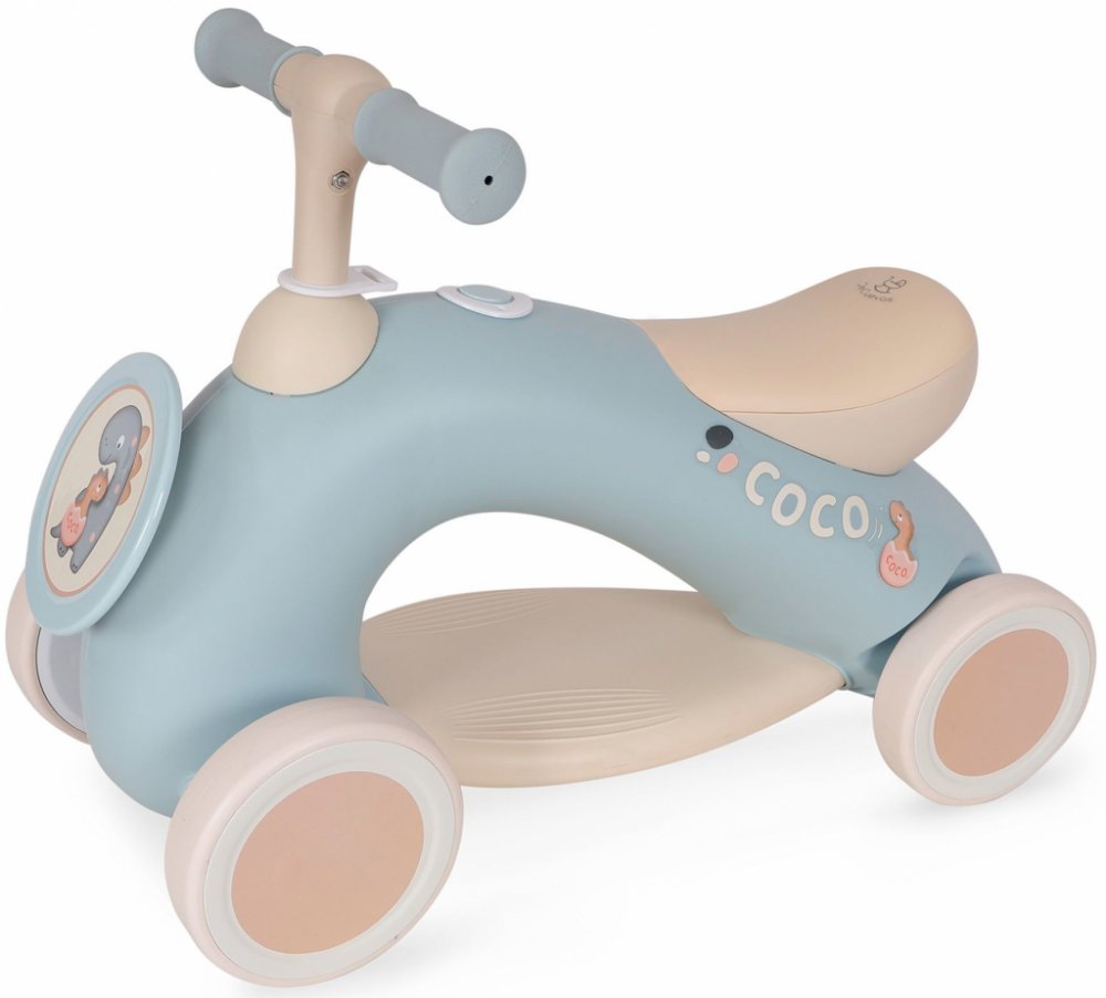 DeCuevas 30080 Moje první odrážedlo COCO 2024, ze stejnojmenné kolekce, která je novinkou roku 2024, je ideálním dopravním prostředkem pro nejmenší děti. Pokud již vaše dítě zvládá první kroky a je připraveno začít se učit jezdit, bude toto odstrkovadlo pro něj perfektní hračkou a pomocníkem. Děti si během hry mohou vyzkoušet nasedání, sesedání, odrážení a řízení a budou tak moci rozvíjet své další schopnosti. Velkou výhodou tohoto odrážedla je podnožka a tažný popruh, který umožní jízdu i těm nejmenším, anebo uleví bolavým malým nožkám. V hravé kolekci COCO je dominantní obrázek dinosauří maminky se svým roztomilým mláďátkem, které nese na zadečku ještě vaječnou skořápku. Potisk malého dinosauříka na jemně holubičí šedomodré látce je základem celé kolekce, již zdobí prvky v pískové nebo narůžovělé barvě, která se promítá i do většiny nosných konstrukcí. Nádherný španělský design, precizní zpracování. Velmi snadná manipulace během samotné hry. Materiál: plast, guma. Baleno v krabici v barvách kolekce. Doporučený věk od 3 let.