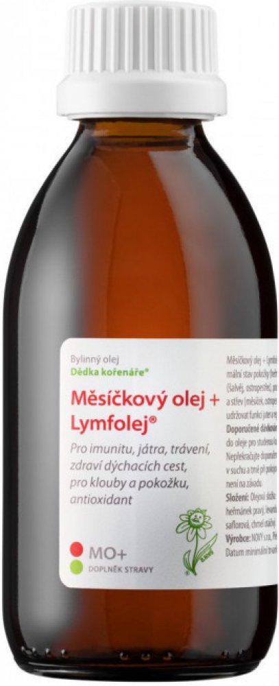 MO vždy končí v lymfě, proto Lymfolej ®:Můj pseudovědecký a pyšně neskromný názor na Měsíčkový olej MO vychází z toho, že jej vyrábím vlastníma rukama tak kvalitně, jako bych ho dělal jen pro sebe, takže k němu mám citovou vazbu. Je mi celkem jedno, že množství jiných výrobců vyrábí další měsíčkové oleje. Já si dělám svůj Měsíčkový olej MO Lymfolej ®, mám ho omakaný a vymakaný a je pro mě několikanásobně lepší než jakýkoliv cizí. Vím proč, ale neřeknu, dalo to hodně bádání. Podle mého pozorování se MO vstřebává do pokožky velmi snadno ve značném množství a lymfatický systém jej zachycuje. Část se dostává i do vazivového a svalového aparátu a umožňuje klouzání svalových a vazivových vláken i fascií po sobě s menším třením. Oranžové barvivo měsíčku a další složky se chovají protizánětlivě.MO se vstřebává do lymfy částečně i z trávení, kde působí podobně opravně a průchodem břišními a hrudními mízními uzlinami stimuluje lymfatickou aktivitu a tvorbu protilátek, které se pak uplatní v krvi tekoucí do plic.