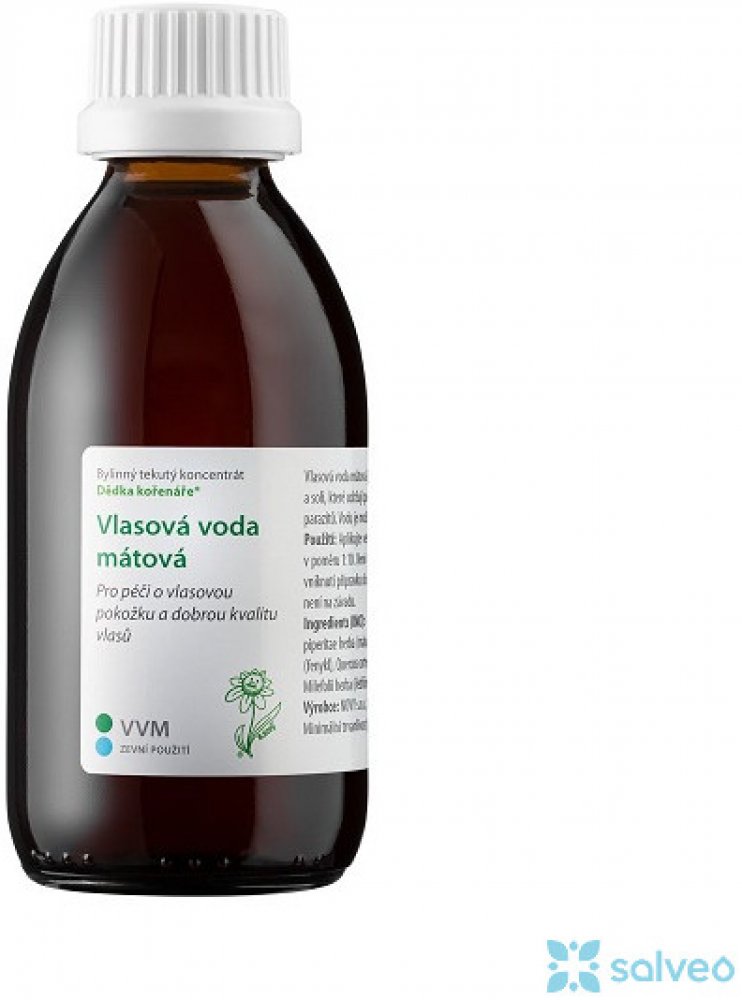 Vlasová voda mátová s vysokým podílem bylin, silic a soli pečuje o vlasovou pokožku a dobrou kondici vlasů a jejich růst. Obsažené bylinné extrakty přirozeně odpuzují většinu hmyzu a zevních parazitů. Vlasovou vodu mátovou je možné použít i při výskytu vší, svrabu, roztočů, blech a dalšího hmyzu.
