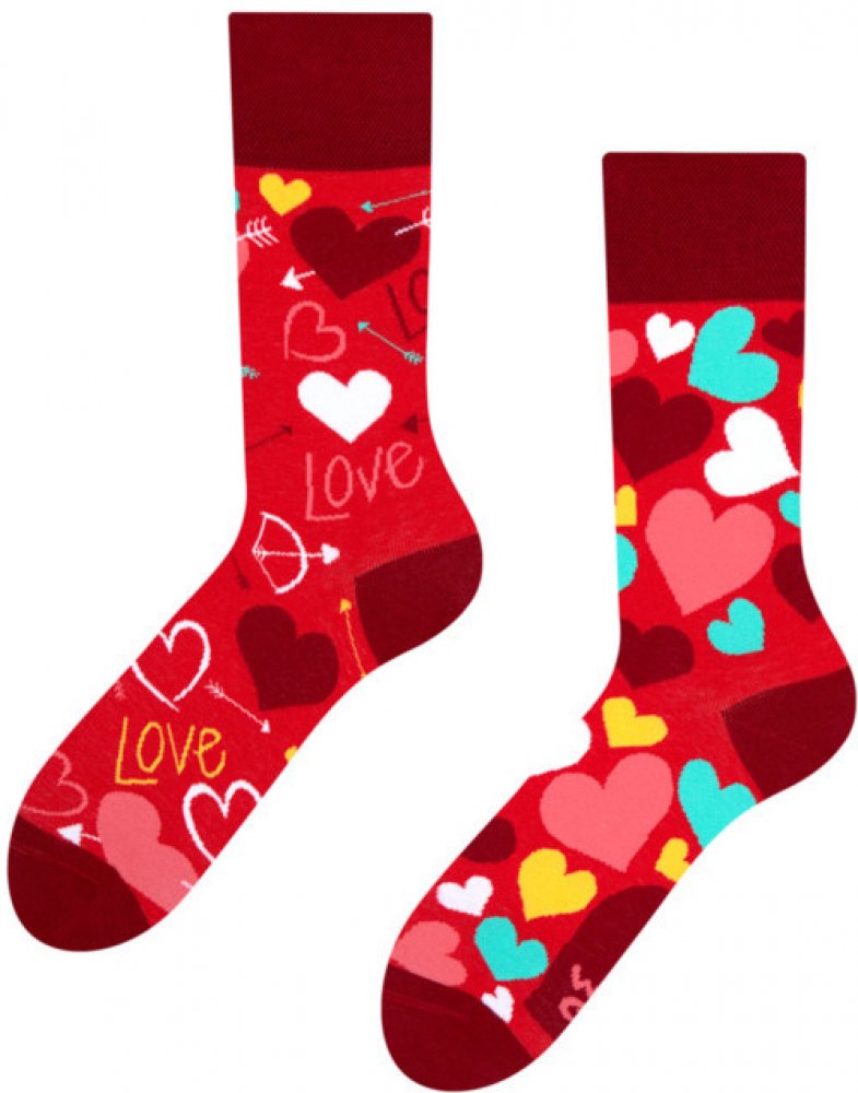 Veselé ponožky DEDOLES srdíčka velikost 43-46. Šiřte dobrou náladu s veselými ponožkami Good Mood. Díky jedinečnému hravému designu vyjádříte své vlastní veselé já. Kvalitní bavlna zase zabezpečí dokonalé pohodlí pro Vaše nohy. Vykouzlete sobě a svým blízkým úsměv na tváři. Materiál: 70% bavlna, 28% polyamid a 2% elastan, značka: Good Mood, ponožky perte v maximální teplotě 40°C, nedoporučuje se: ...
