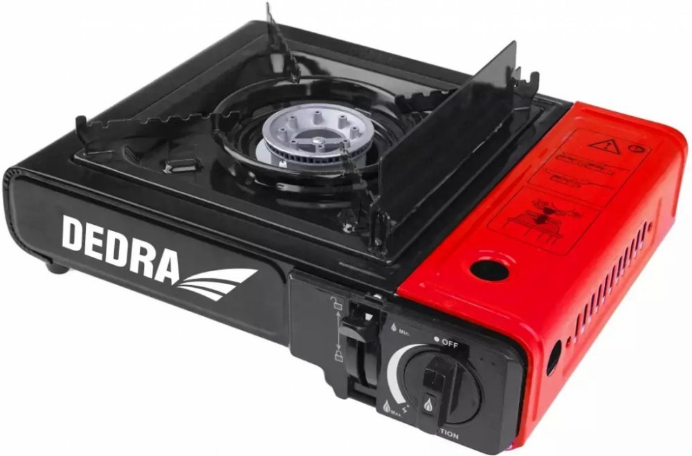 - bezpečnostní prvky: jištění proti přehřátí, aretace ovladače v nulové poloze, zvýšené odvětrání kartuše, chránič proti větru, protiskluzové nožičky, bezpečnostní tlakový regulátor, prevenční prvek proti úniku plynu