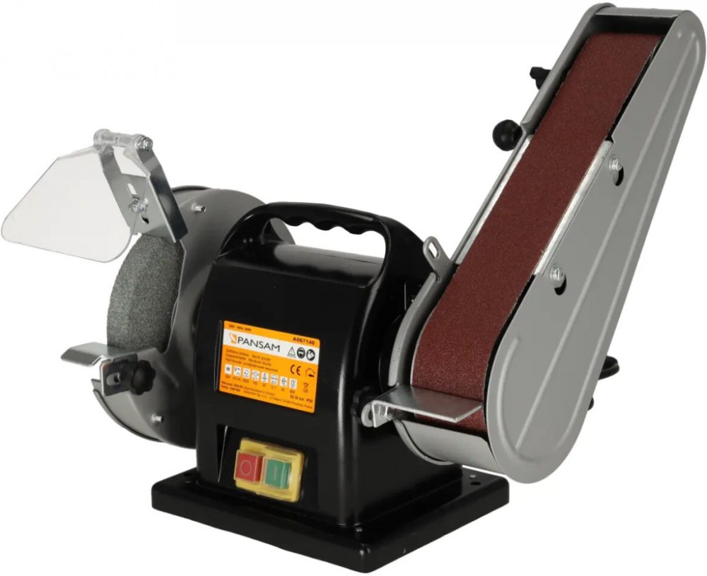Stolní bruska s brusným kotoučem a brusným pásem model A067140 je nářadí pro suché broušení ocelového nářadí, jako: nože soustruhu, nůžky, dláta, sekáčky, nástroje s ostřím, a na jiné drobné brusičské práce. Brusný pás slouží také k obrábění veškerého dřeva a materiálů na bázi dřeva (překližka, dřevotříska, atd.) a umělých hmo...
