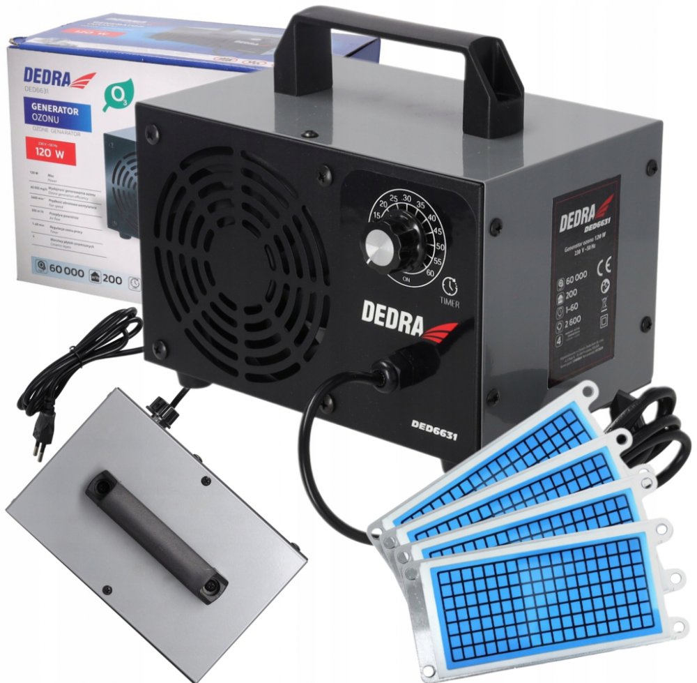 Profesionální ozonátor DEDRA DED6631 je zařízení, které generuje ozon (O3) a používá se k dezinfekci vzduchu, odstraňování pachů a eliminaci alergenů. Účinně ničí bakterie, viry, plísně a další patogeny přítomné ve vzduchu. Neutralizuje nepříjemné pachy cigaretového kouře, plísní, vlhkosti a pomáhá odstraňovat prach, roztoče a pyl. Pomůže také při odstraňování stěn a klimatizaci.
