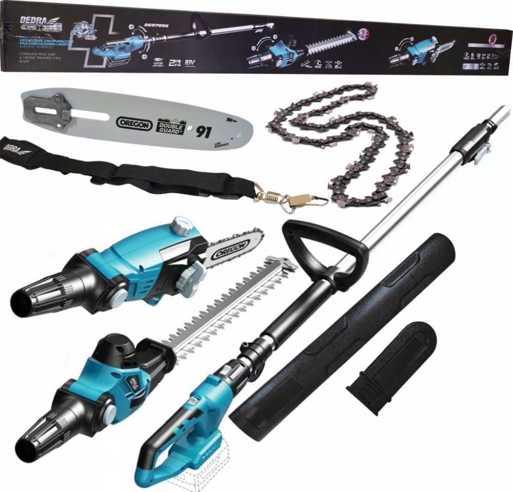 Samonosná pila bude fungovat všude tam, kde potřebujete stříhat vysoké větve. Délka vodítka v tomto modelu je 20 cm. Díky dlouhému výložníku - zařízení má celkovou délku 2,7 m (s pilou), můžete efektivně a bezpečně odříznout větve, aniž byste museli rozkládat žebřík. Pila je vybavena systémem, který umožňuje rychlé a snadné nastavení napnutí řetězu bez použití nářadí. Rychlost řetězu 5 m / s zajistí uživateli rychlý a efektivní řez. Řetězová pila DED7096 na výložníku má schopnost upravit polohu rukojeti v rozsahu -90 / 0 / + 90 stupňů (5 stupňů sklonu), což umožňuje pohodlnější práci. Dále je možné nastavit úhel řezací hlavy v rozsahu 0-30 stupňů. Díky automatickému mazání řetězu je pila snadno použitelná.