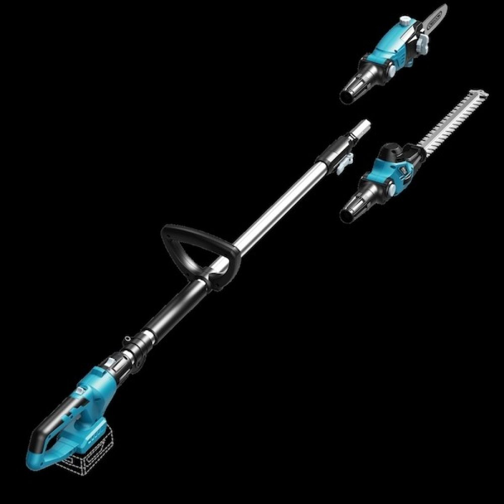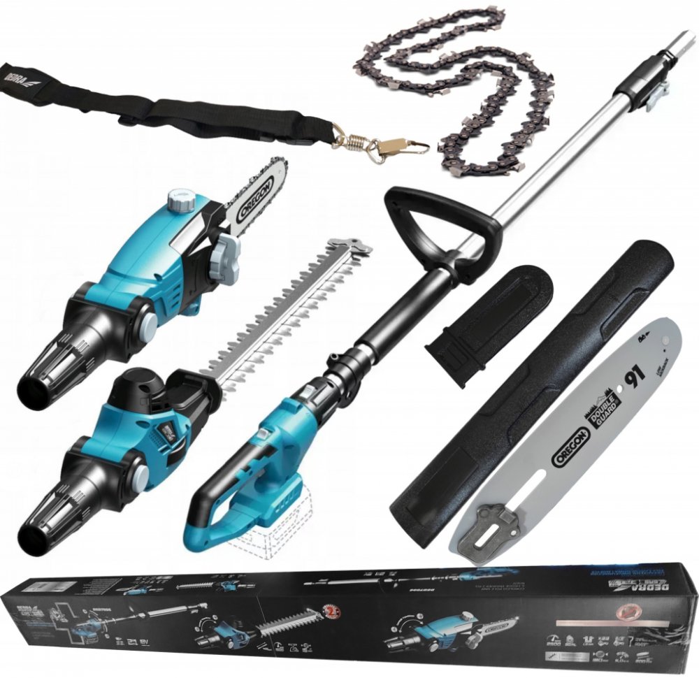 Zařízení 2 v 1 je kombinací nůžek na živé ploty a motorové pily. Je to nástroj, který najde své uplatnění v zahradě nebo sadu.