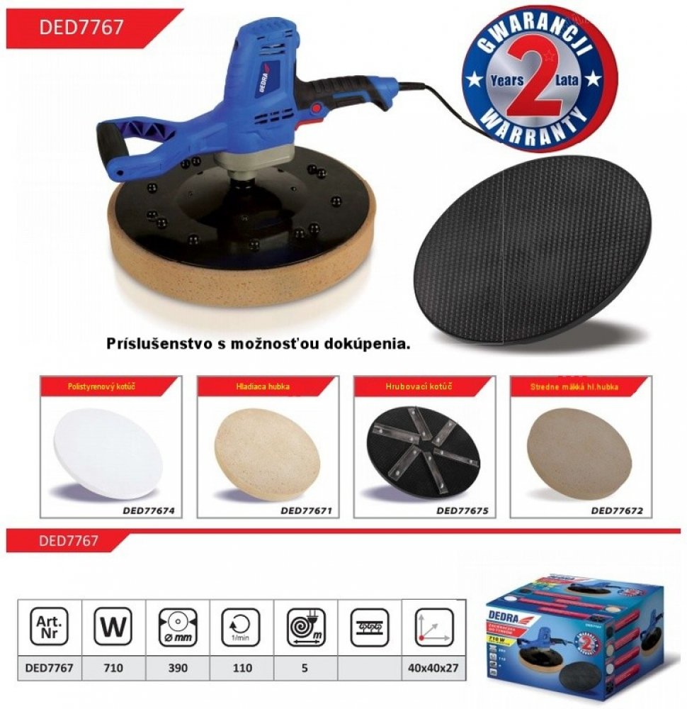 710 W 390 mm 4.3 kg Dedra sanační 710 W 230 V elektrické na beton pro obecnou přípravu povrchu pro stacionární použití suchý zip kartáčový s vyššími vibracemi a hlučností