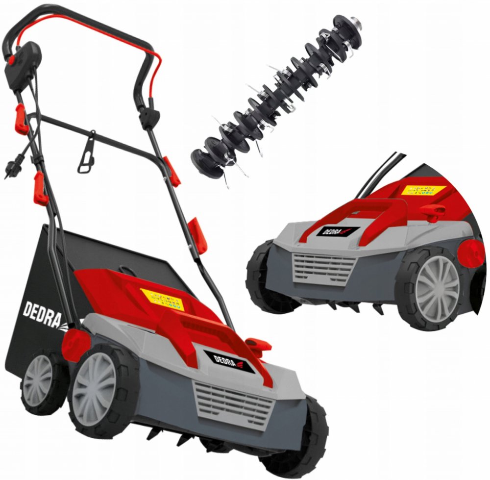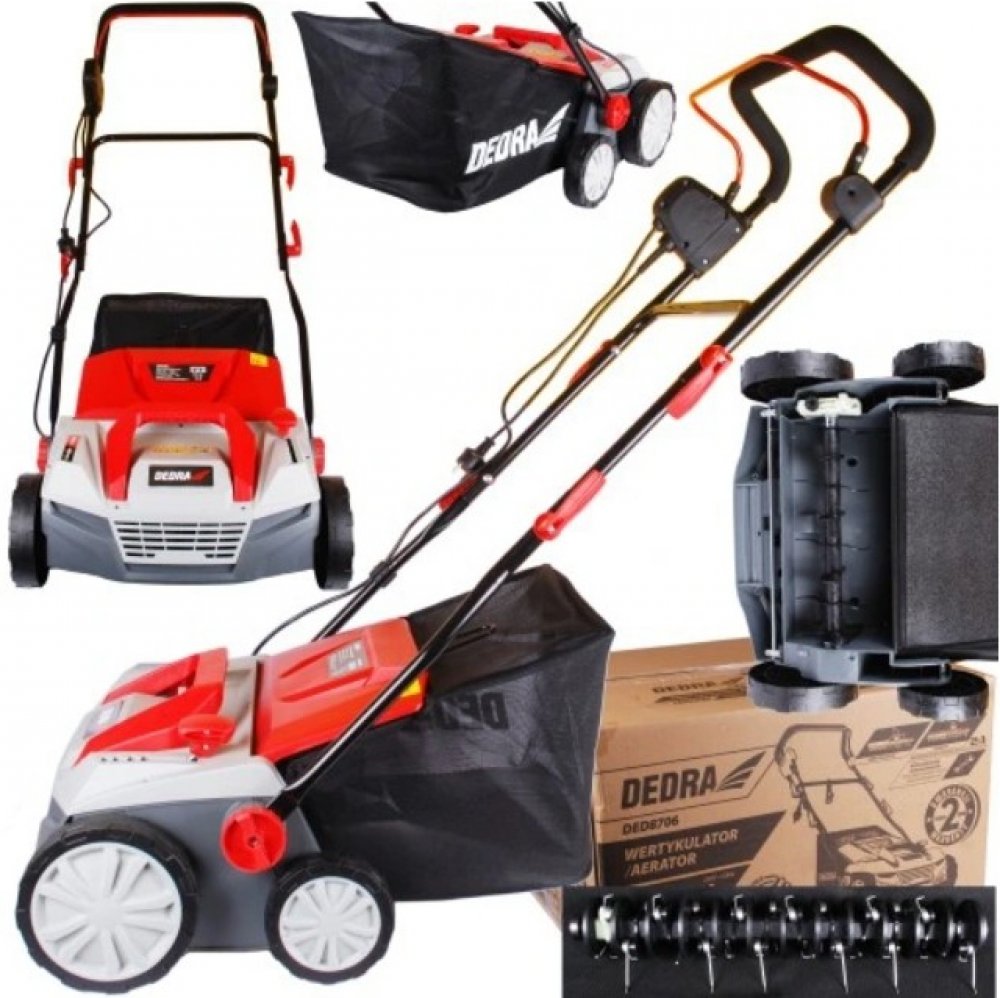 Pečujte o svůj trávník pomocí provzdušňovače trávníku.K čemu slouží provzdušňovač trávníku?Použití provzdušňovačea provzdušňovače trávníku vám umožní zlepšit provzdušnění, hydrataci a výživu vašeho trávníku.Provzdušňovač proráží půdu četnými kolíky otáčejícími se na hřídeli a vytváří tak vzduchové kanálky, které zajišťují dostatečné okysličení půdy.Kromě toho proniká voda s živinami, například hnojivem, rychleji do půdy skrze vytvořené kanálky, což má velký význam pro staré, silně zakořeněné trávníky se silnými kořeny.to umožňuje snadnější přístup vody a živin, což vede k pěknému, rovnoměrnému růstu trávy bez lysin, které jsou patrné zejména po zimě.Provzdušňování lze provádět pomocí ručního nářadí, například vidlí, ale kdo má čas a energii na to, abyto dělal efektivně a neustále.Proto se vyplatí používat chytrá řešení pro provzdušňování trávníku, navíc funkce provzdušňovače umožňuje komplexní péči o trávník na zahradě.vertikutátor má několik speciálně zakřivených nožů umístěných na hřídeli.Během provozu se nože otáčejí a zakusují do půdy, čímž ji kypří a sekají kompaktní místa trávníku a tzv.plsť, tj.zbytky po sekání trávníku.Podélné řezy v půdě umožňují lepší hydrataci a výživu trávníku a odstranění plsti a mechové vrstvy z trávníku usnadňuje jeho rovnoměrný růst.Vertikutátor navíc půdu rozřezává řezáním a způsobuje provzdušnění.Vertikutátor/Aerátor DEDRA DED8705 je zařízení určené pro malé a středně velké zahrady.Je vybavendvěma nápravami s koly a umožňuje efektivní práci a snadné manévrování.Je poháněn elektricky ze zásuvky, což zajišťuje tišší provoz než spalovací zařízení.Pracovní záběr je 38 cm, což zaručuje rychlou a efektivní práci, a čtyřstupňové nastavení hloubky umožňuje přizpůsobit pracovní režim vašemu trávníku.Vlastnosti: - Slouží k sekání trávy na trávníku, který je v provozu v době, kdy je v provozu:Dedra DED8706 - výkonný elektrický vertikutátor doporučený pro péči o zahradu.Použití provzdušňovače a vertikutátoru vám umožní zlepšit provzdušnění, hydrataci a výživu vašeho trávníku.Pracovní záběr je 38 cm, což zaručuje rychlou a efektivní práci.Centrální nastavení hloubky umožňuje přizpůsobit pracovní režim vašemu trávníku.Asymetrická kola (přední 20 cm a zadní 15 cm) usnadňují práci.Skládací rukojeť usnadňuje přepravu a skladování.Vybaveno sběrným košem na trávu o objemu 45 l.Elektrický pohon znamená tichý provoz. Příkon 1800 W, Pracovní šířka 38 cm, Hřídel nože a hřídel pružiny v sadě, 5stupňová pracovní hloubka (-12+6), Centrální nastavení pracovní hloubky, Sběrný vak 45 l, Výměna nože a pružiny bez použití nářadí, Průměr předních kol 15/20 cm