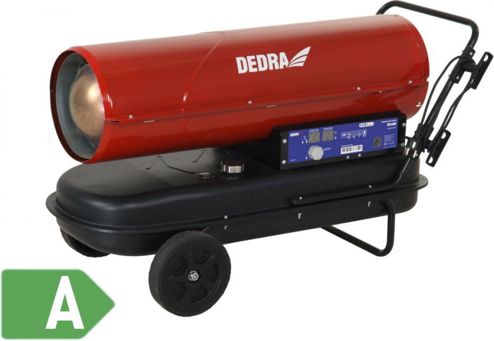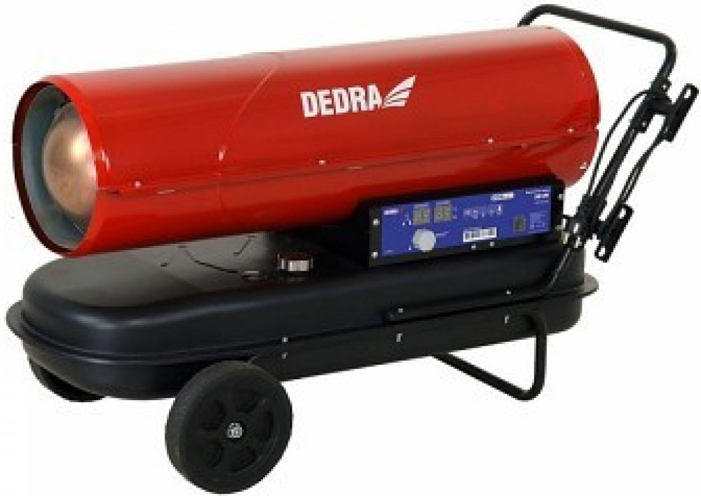 Ohřívač DED9964T je zařízení určené pro vnitřní použití. Používá se k vytápění nebytových prostor, jako jsou dílny, sklady, výrobní haly, skleníky nebo při rekonstrukcích a stavebních pracích. Topení je poháněno naftou nebo lehkým topným olejem. Zařízení lze používat pouze v místnostech s účinným větráním. Kovové pouzdro se nezahřívá ani při dlouhodobém provozu. Tepelná ochrana zajišťuje bezpečný provoz. Topení má dva přehledné displeje, které zobrazují teplotu okolí a teplotu nastavenou knoflíkem regulace teploty. Kola a rukojeť usnadňují přepravu a skladování.